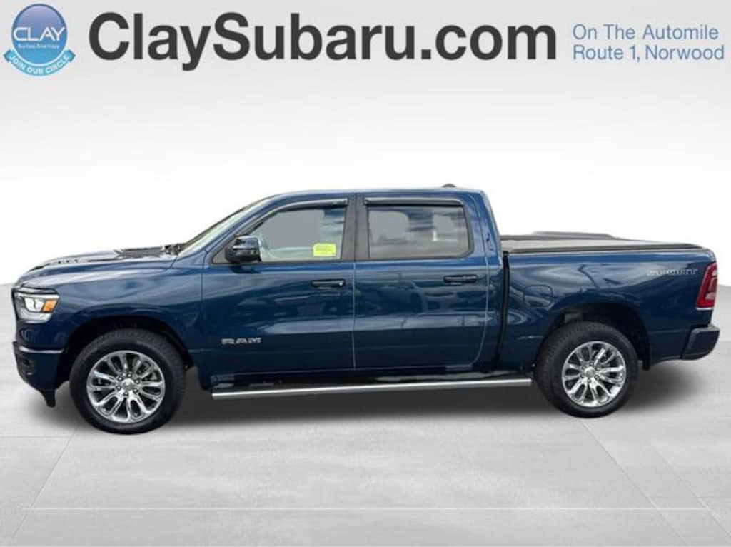 Patriot Blue Pearlcoat 2023 Ram 1500 Laramie 4D Crew Cab 4WD 8-Speed Automatic HEMI 5.7L V8 Multi Displacement VVT eTorque