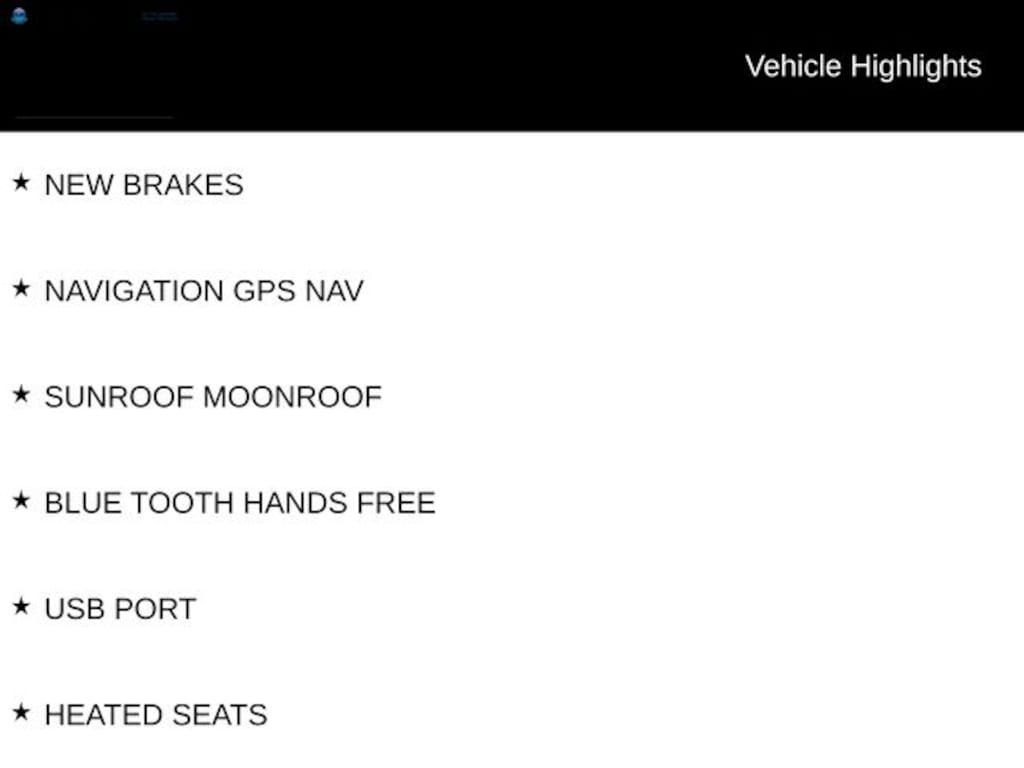 NEW BRAKES, NAVIGATION GPS NAV, SUNROOF MOONROOF, BLUE TOOTH HANDS FREE, USB PORT, HEATED SEATS.